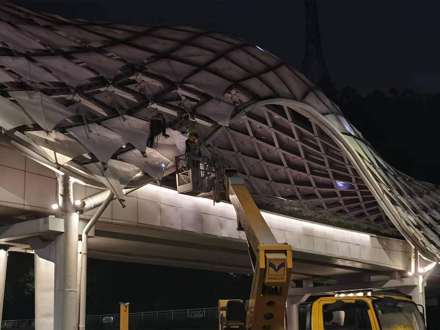 深圳市遠(yuǎn)信膜結(jié)構(gòu)工程有限公司是一家專業(yè)的膜結(jié)構(gòu)空間結(jié)構(gòu)設(shè)計(jì)、方案定制、制作安裝的專業(yè)化公司。遠(yuǎn)信膜結(jié)構(gòu)公司具有十年以上膜結(jié)構(gòu)空間設(shè)計(jì)和安裝經(jīng)驗(yàn),團(tuán)隊(duì)經(jīng)過十多年的發(fā)展已經(jīng)初具規(guī)模,現(xiàn)已建立了獨(dú)立的資深設(shè)計(jì)團(tuán)隊(duì)、專業(yè)的施工團(tuán)隊(duì)以及售后服務(wù)團(tuán)隊(duì),同時(shí)還獲得了膜結(jié)構(gòu)專業(yè)設(shè)計(jì)、施工雙一級(jí)資質(zhì)、“全國質(zhì)量、信用、服務(wù)AAA級(jí)企業(yè)”、“全國行業(yè)重質(zhì)量知名企業(yè)”等榮譽(yù)資質(zhì)。