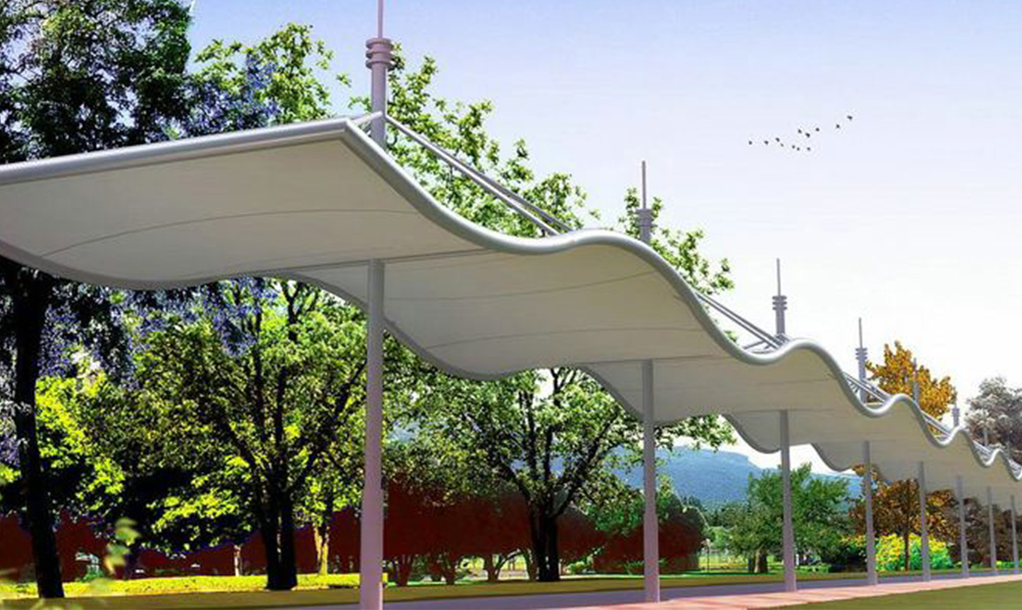對(duì)于膜結(jié)構(gòu)建筑來(lái)說(shuō),首先要發(fā)揮抵御各種天氣現(xiàn)象的作用,比如說(shuō)自然現(xiàn)象的日曬雨淋等會(huì)對(duì)建筑結(jié)構(gòu)有的內(nèi)部空間造成的影響,還要保持建筑物內(nèi)部人們生活環(huán)境的舒適度。在使用這樣的材料建筑的時(shí)候,我們要考慮好選擇什么樣的材料來(lái)應(yīng)對(duì)當(dāng)?shù)剌^普遍的天氣的狀況。對(duì)于室內(nèi)的透光性以及很好的通風(fēng)的效果,也是張拉膜景觀設(shè)計(jì)的較為突出要在意的一點(diǎn)。